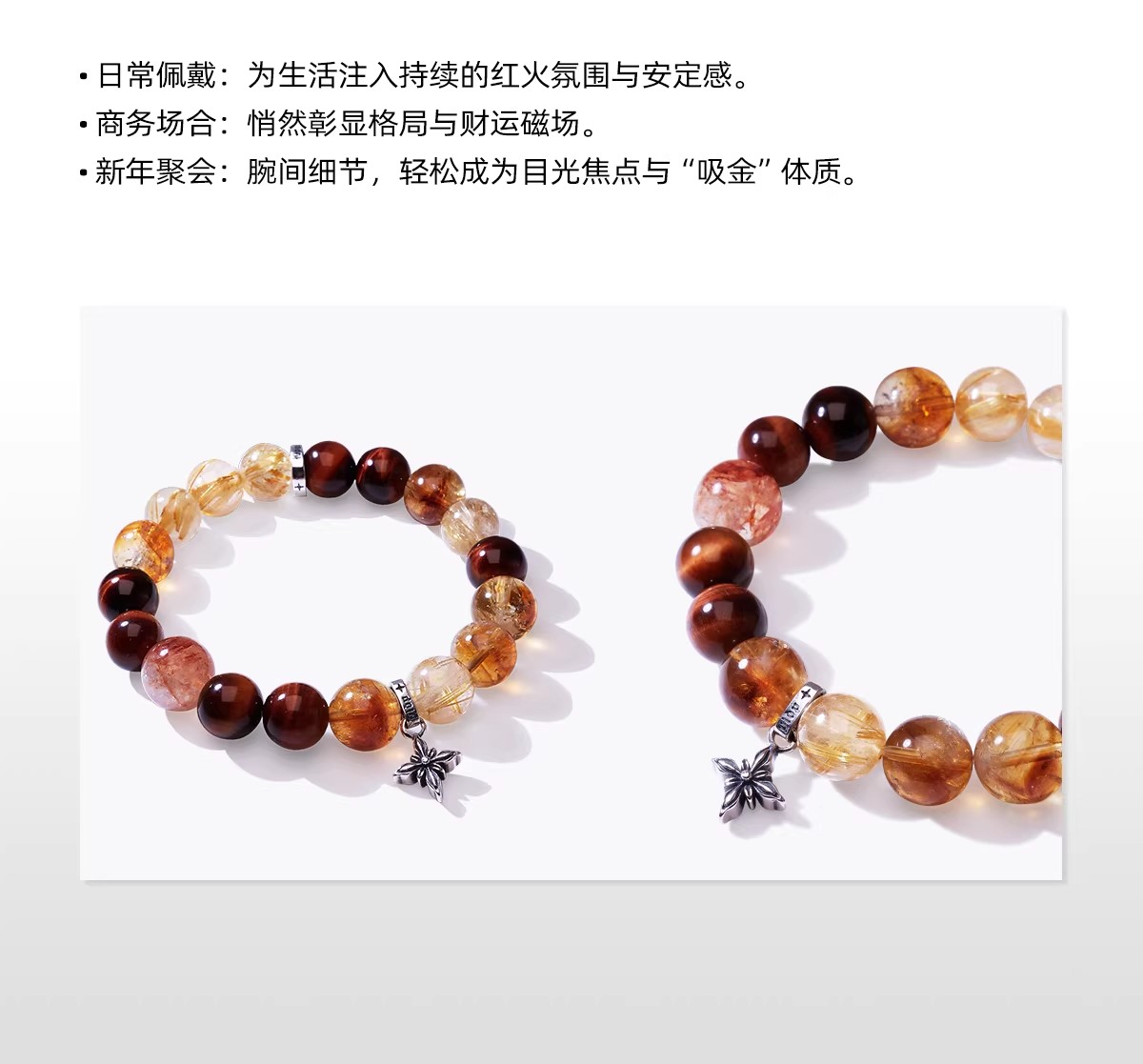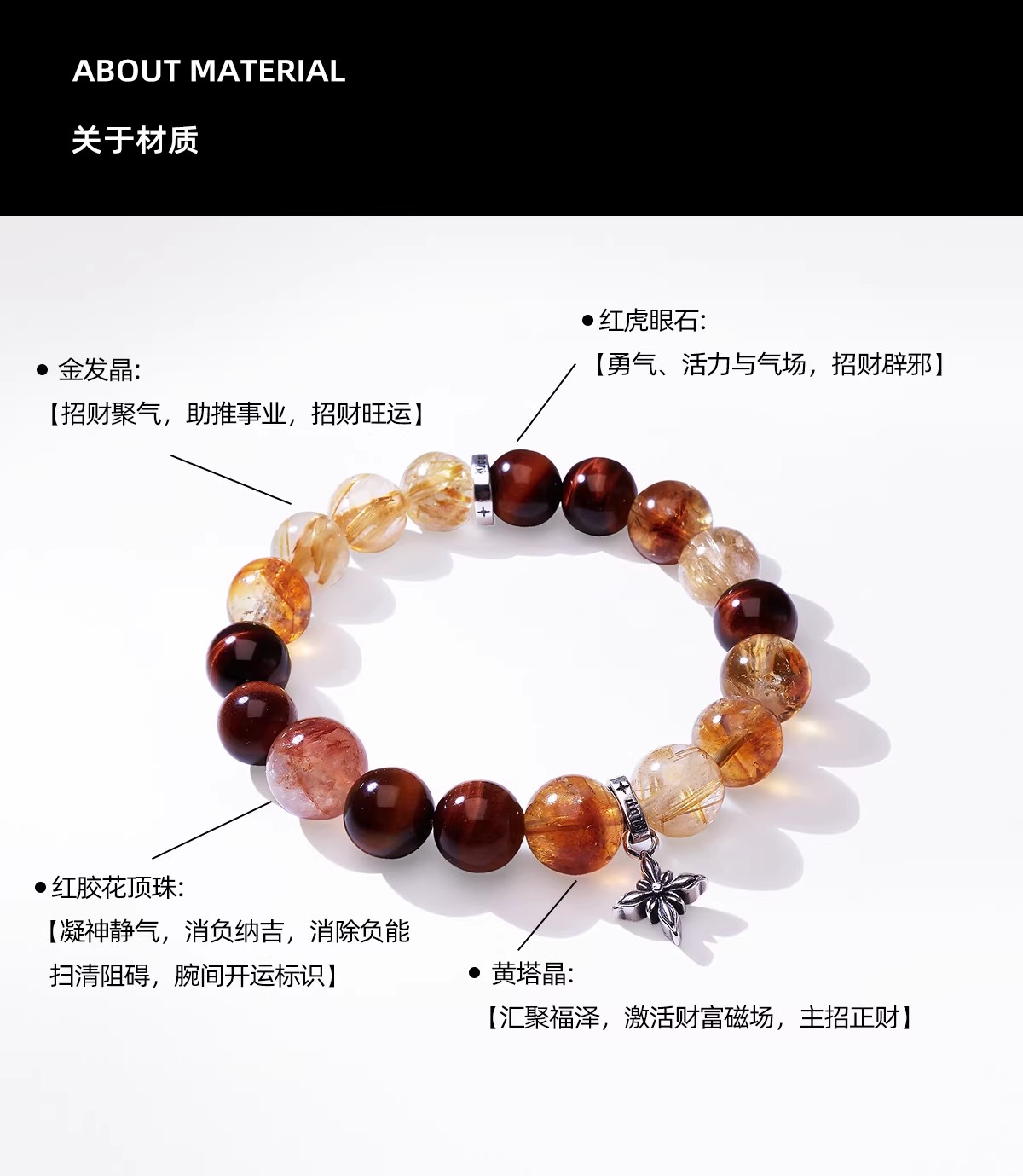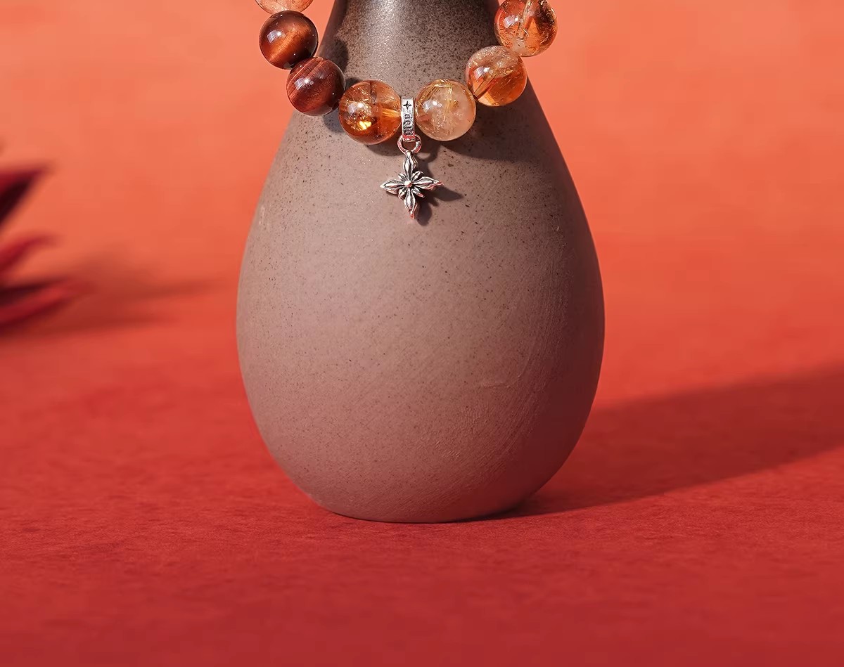 YLDP红虎眼石金发晶黄塔晶红胶花水晶手链