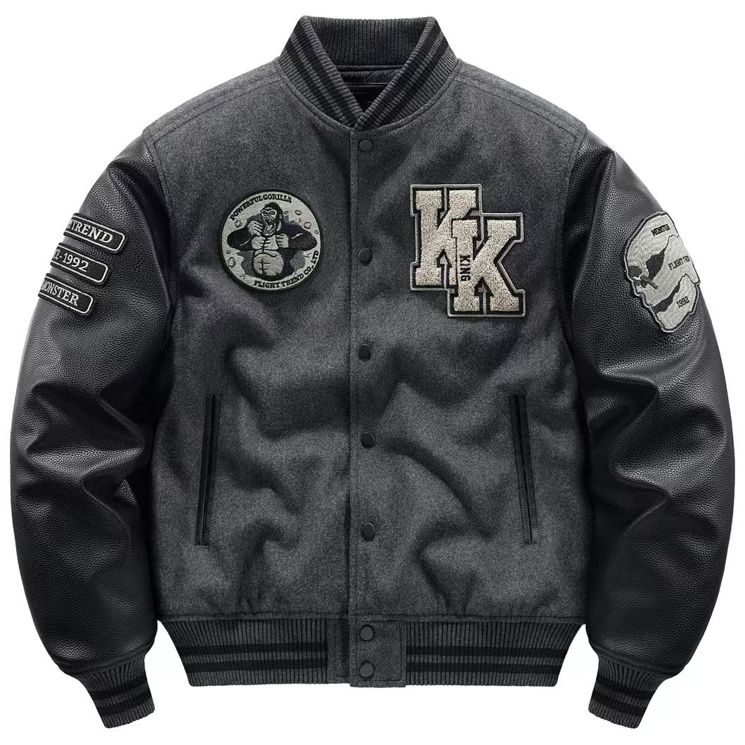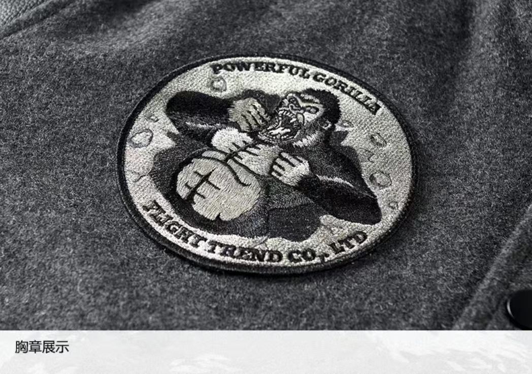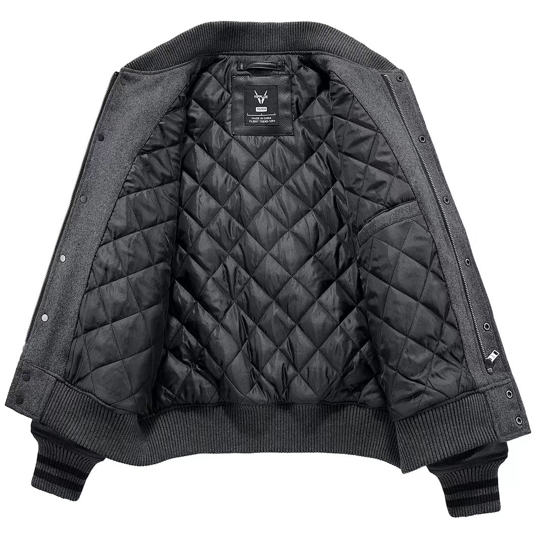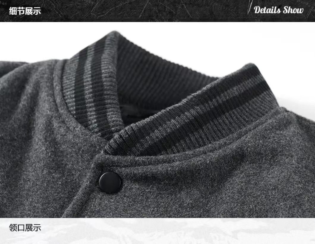 海淘秋冬季刺绣加厚重磅羊毛呢棒球服外套