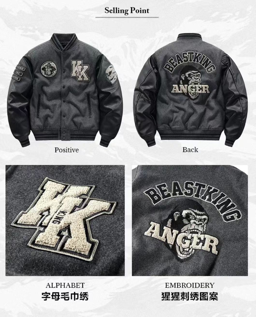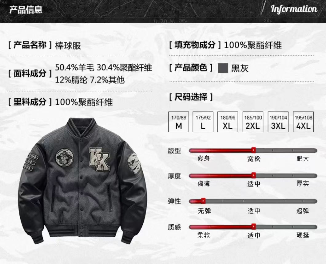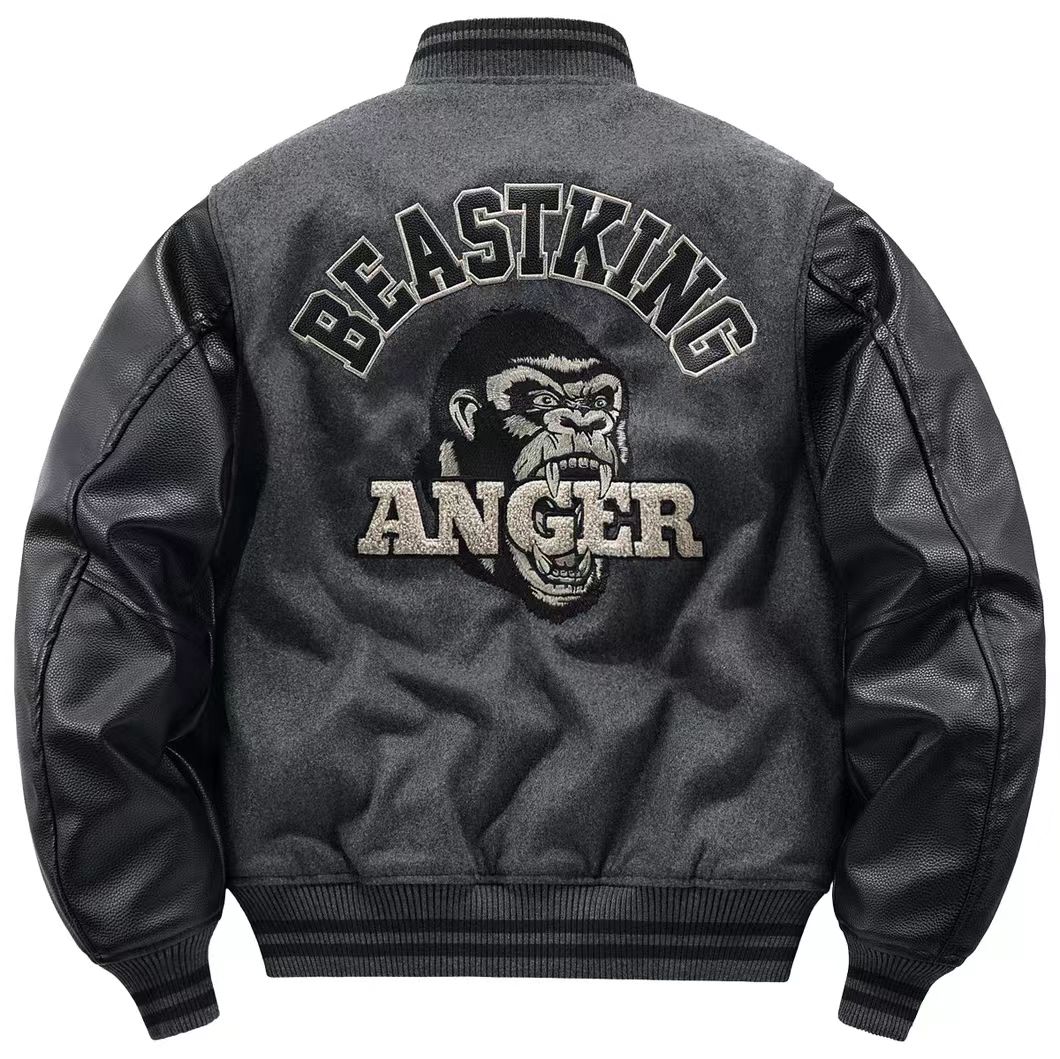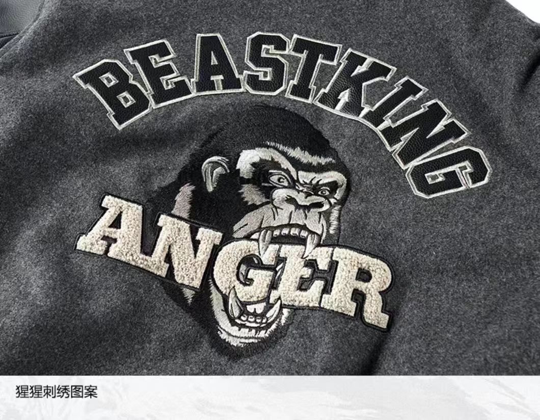 海淘秋冬季刺绣加厚重磅羊毛呢棒球服外套