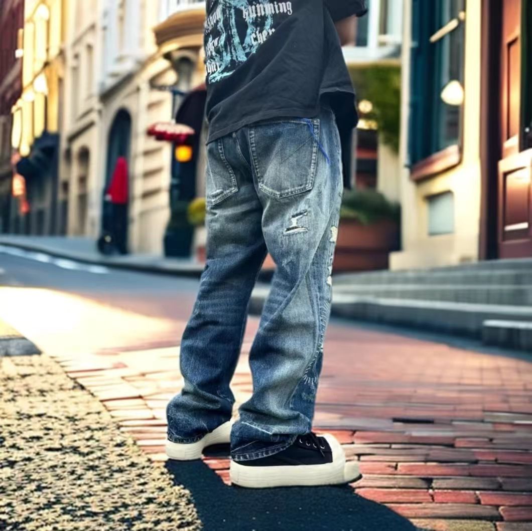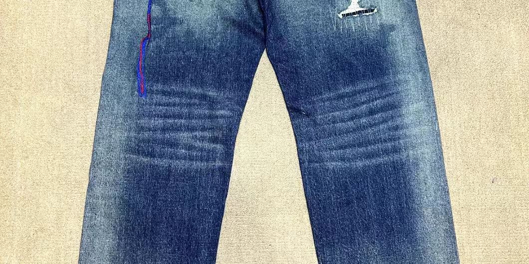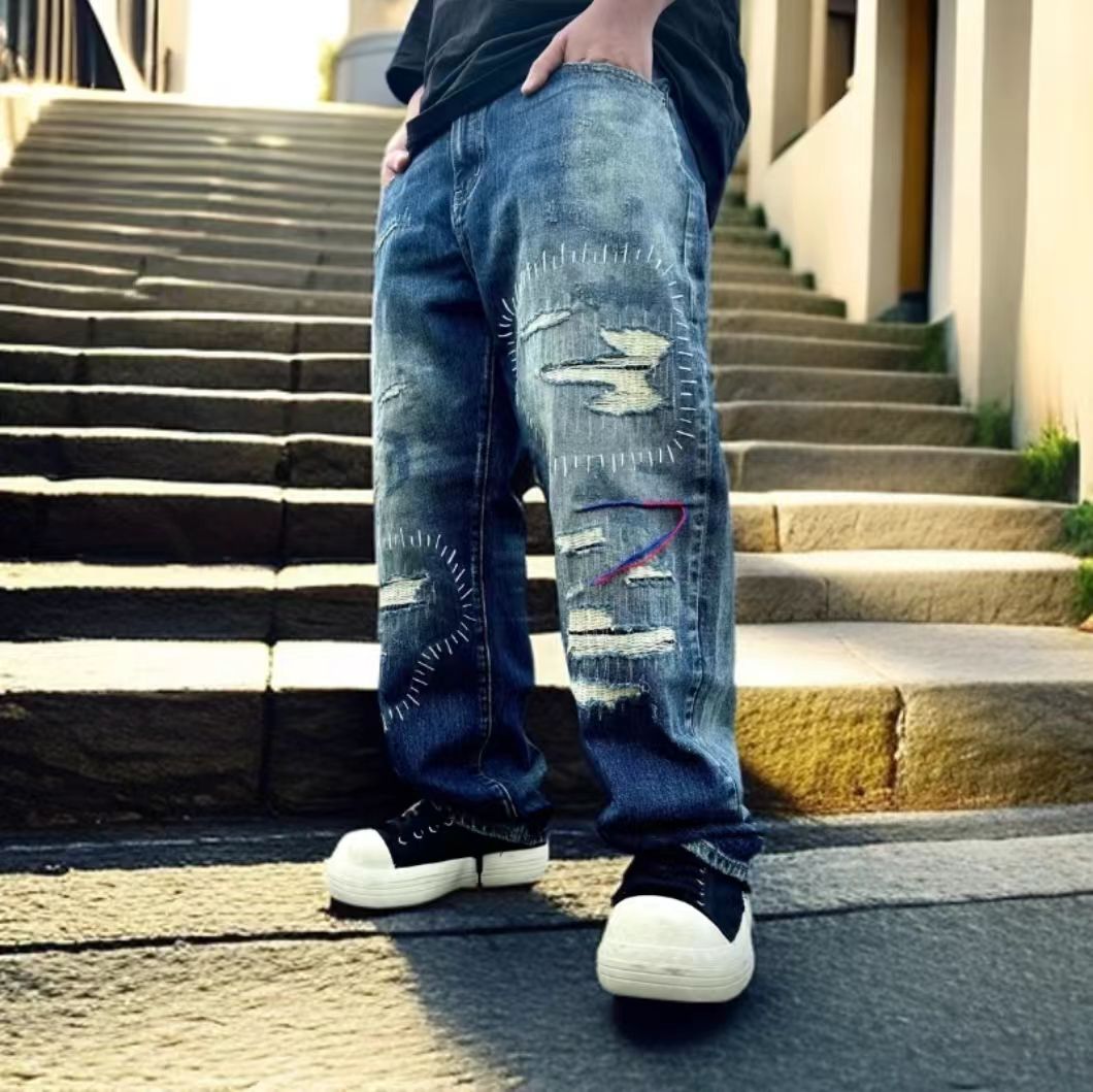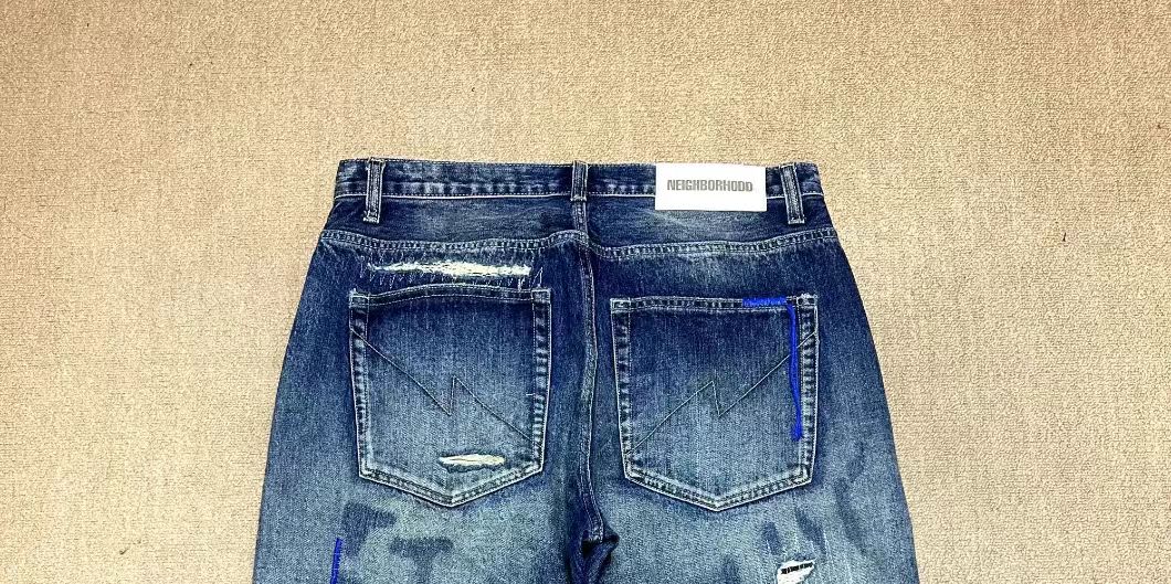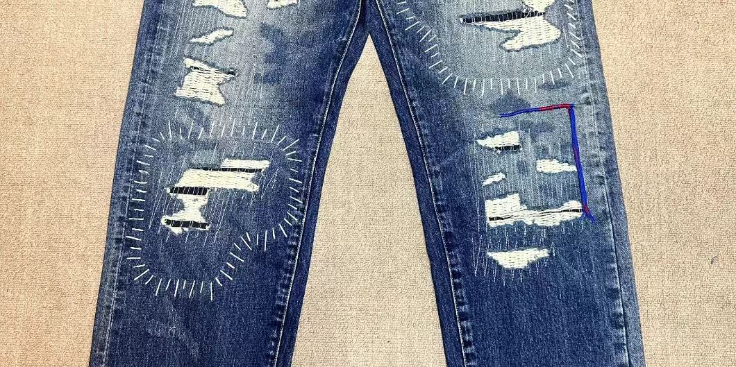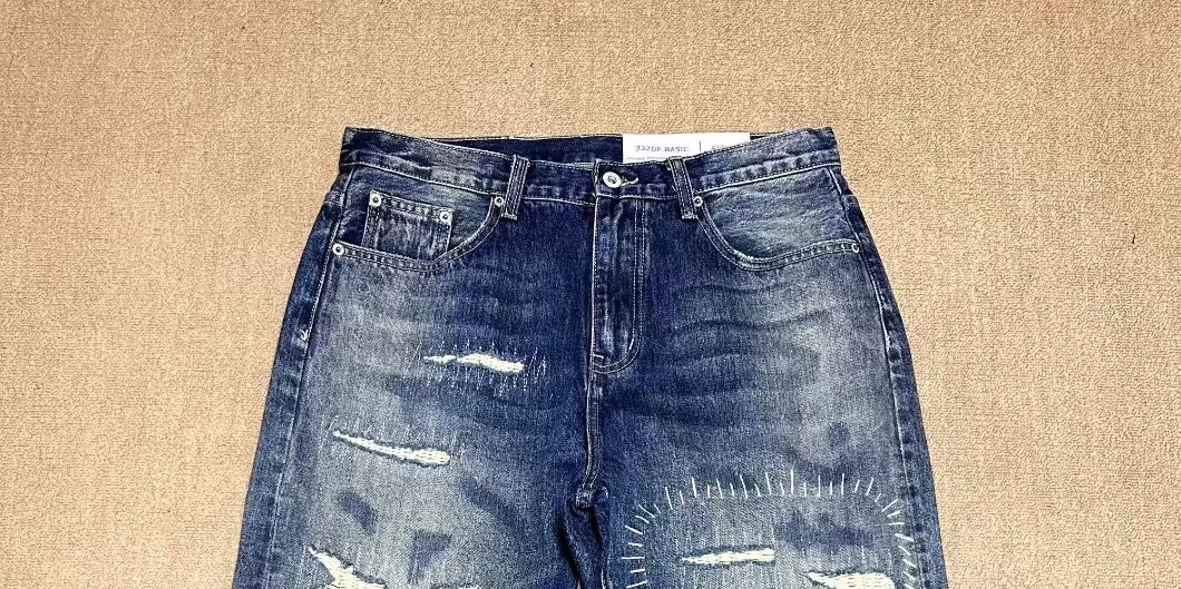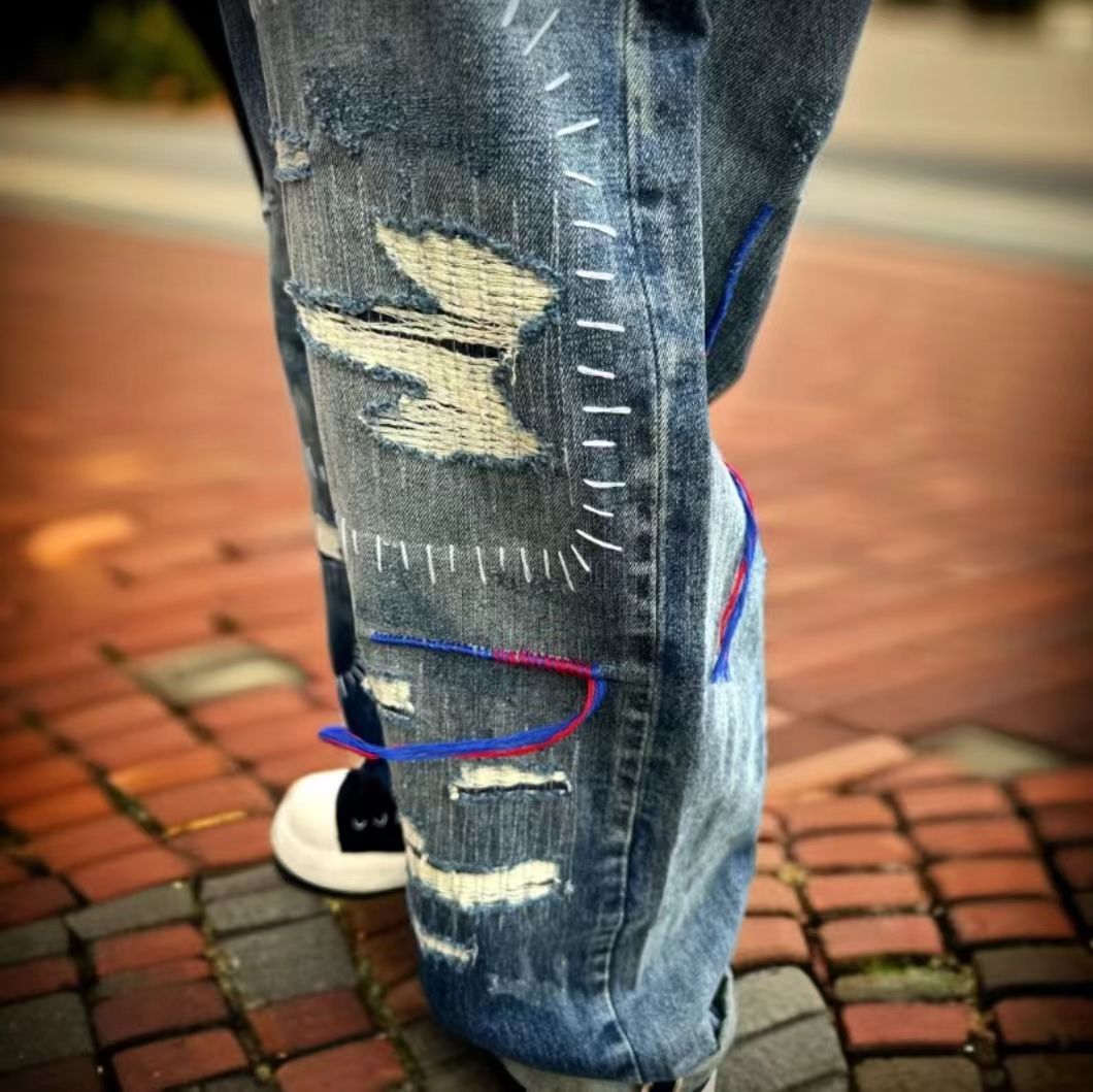 日本海淘彩线牛王破洞牛仔裤