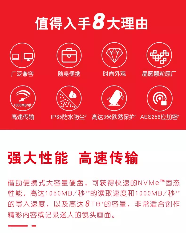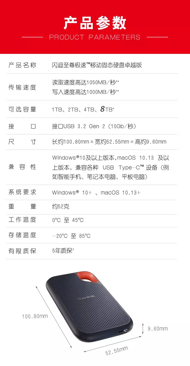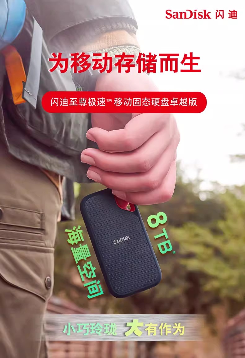 闪迪移动固态硬盘NVMe外接TypeC便携SSD存储E61高速8TB防水防摔4T