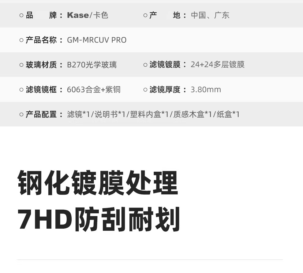 Kase卡色 GM-Pro专业金刚狼大师级纤薄金线UV镜