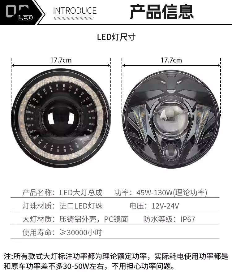 同款通用吉普大灯总成改装透镜前照灯